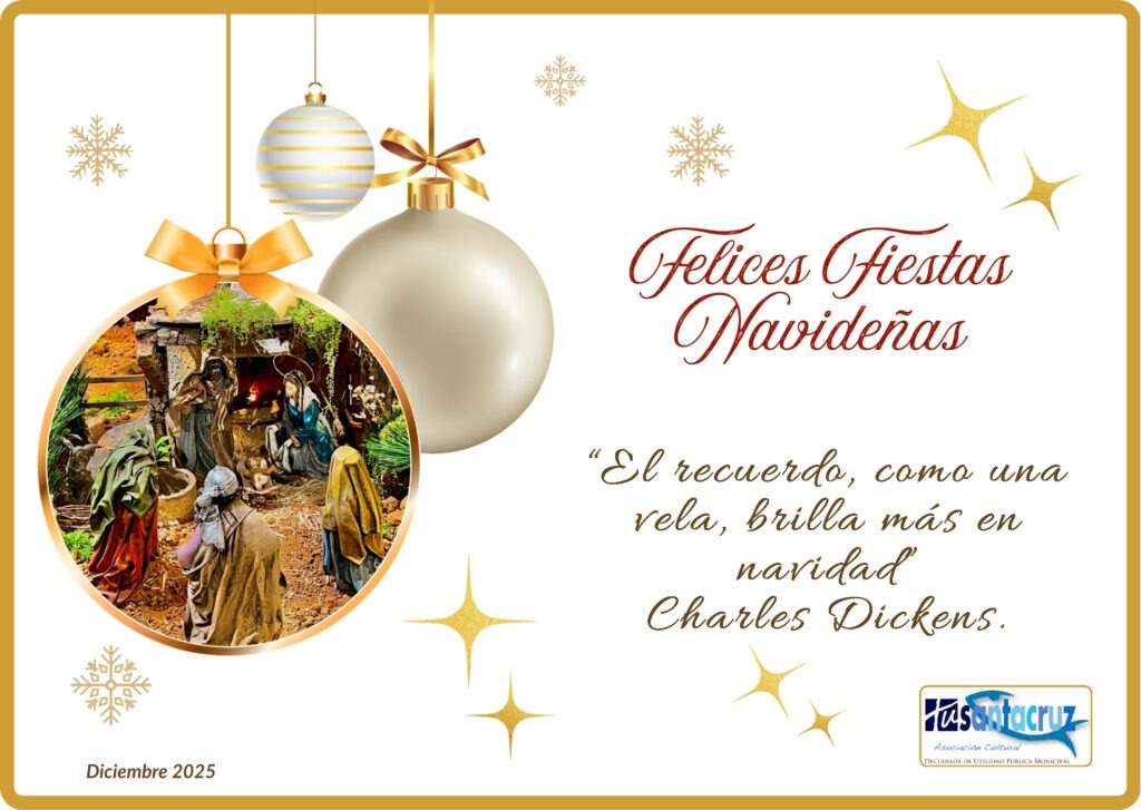 Desde la Asociación TuSantaCruz les deseamos una Feliz Navidad y un próspero Año Nuevo, lleno de Salud, Ilusión y Buenos Momentos. Agradecemos el apoyo y la confianza recibidos a lo largo del año.