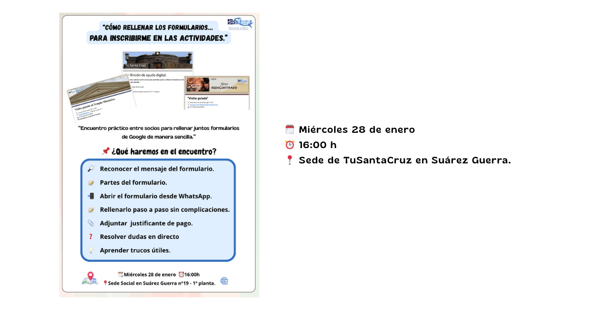- Descripción: “Encuentro práctico entre socios para rellenar juntos formularios de Google de manera sencilla.”